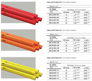 Ống luồn PVC thương hiệu AC sản xuất theo 4 dòng sản phẩm: Nhẹ, Trung bình M, Trung bình M1 và Nặng.